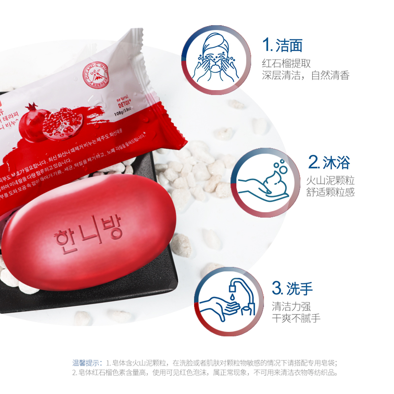 Puhua Korean volcanic mud red pomegranate soap 108g family pack men and women sulfur scrub bath hand wash bath