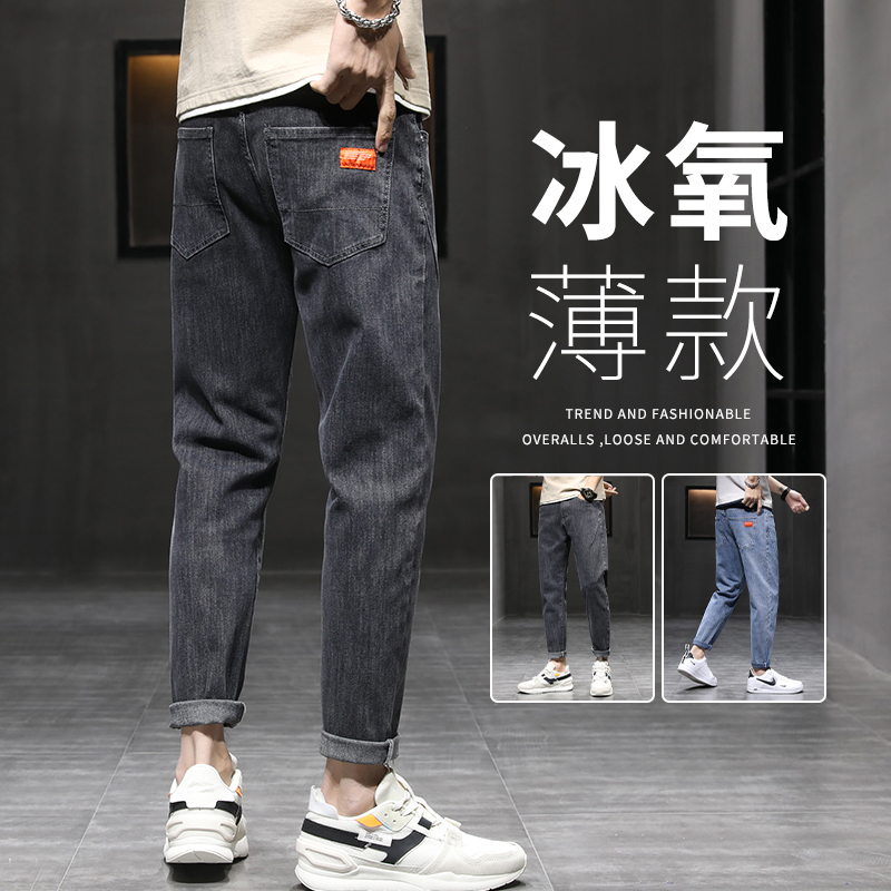 Jeans Men's Spring 2022 New Tide Cards Loose Straight Barrel Spring Autumn Trend Casual Long Pants 90% Men Pants