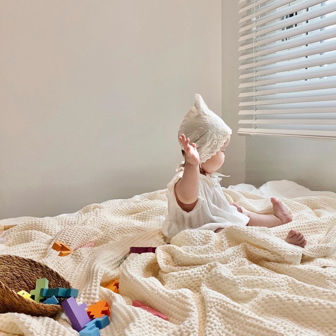 Malolotte Korea Imports Newborn Baby Waffag Small Blanket Children Pure Cotton Modale Afternoon Nap Cover Blanket