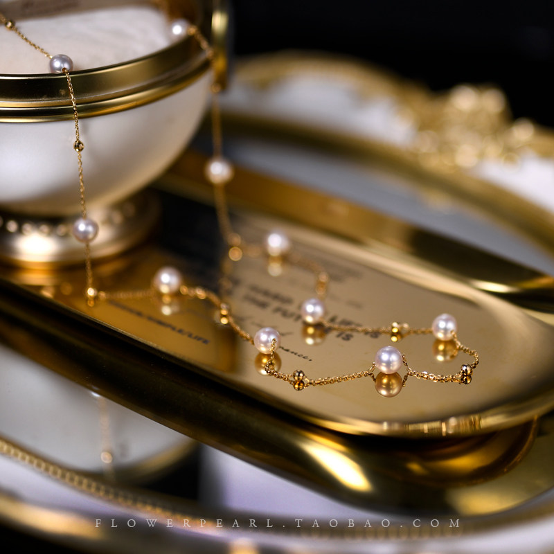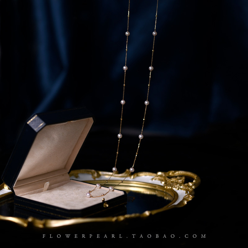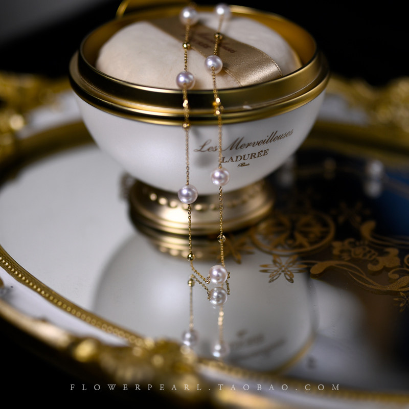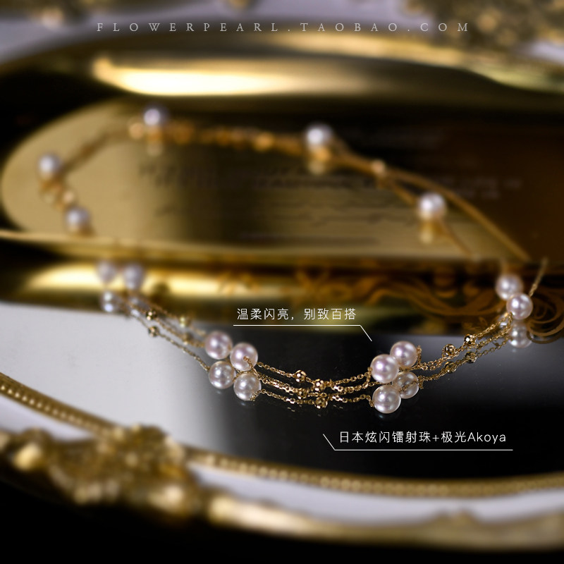Stars • Japanese Aurora Akoya Seawater Pearl can orbit double-layer 18K gold sweater chain long-plate necklace