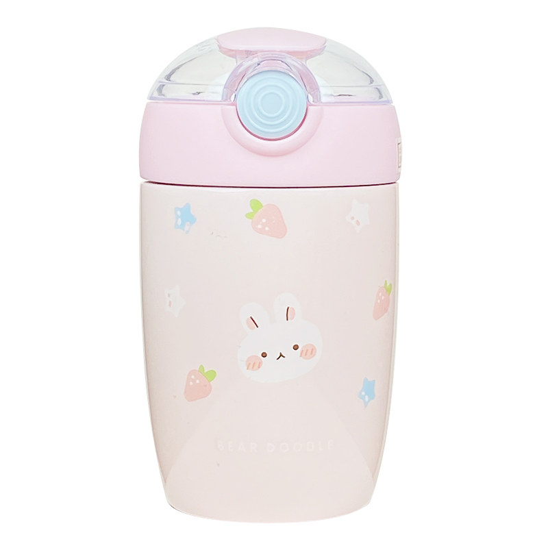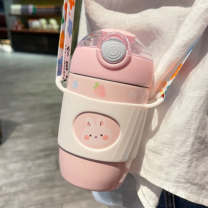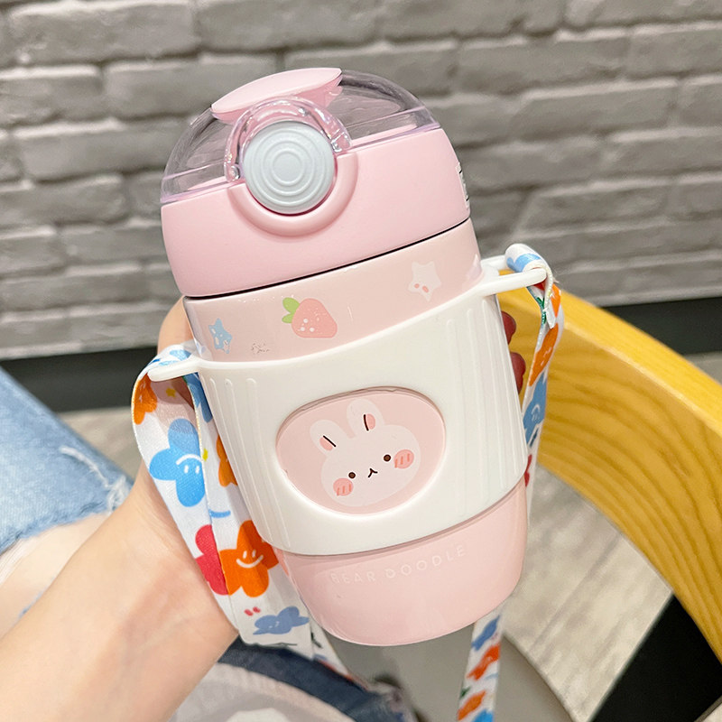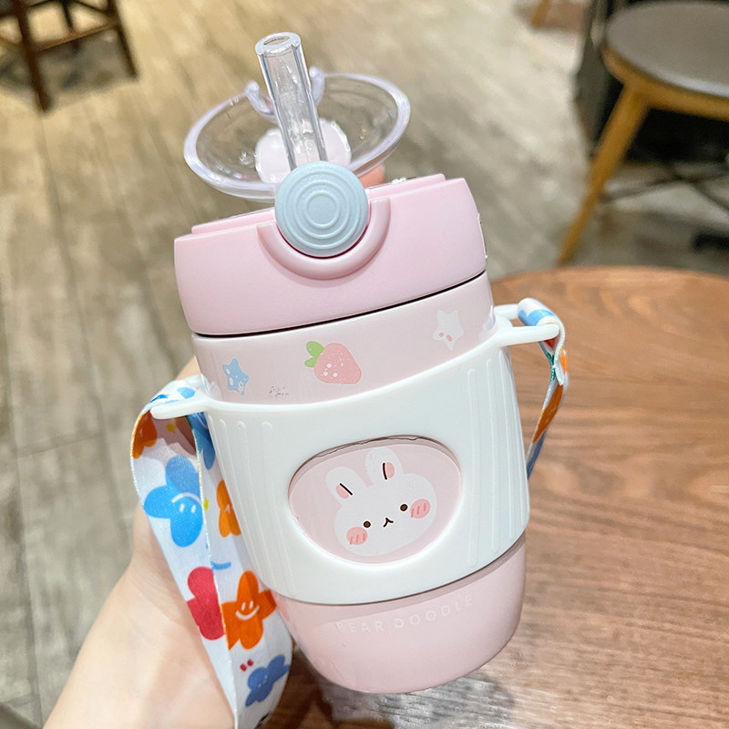 Cute bag stainless steel insulation cup children to school special anti-fall cup students with straw-walking water bottles