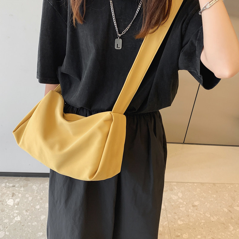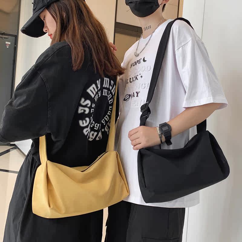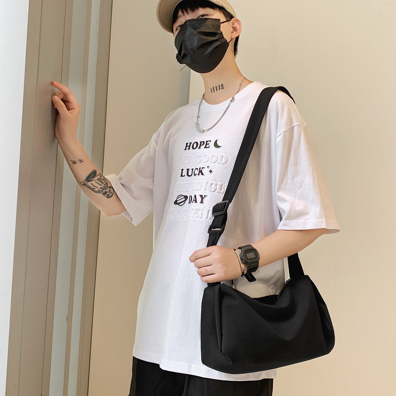 The new tide in Japanese black single shoulder package is a simple canvas package for female summer 2021