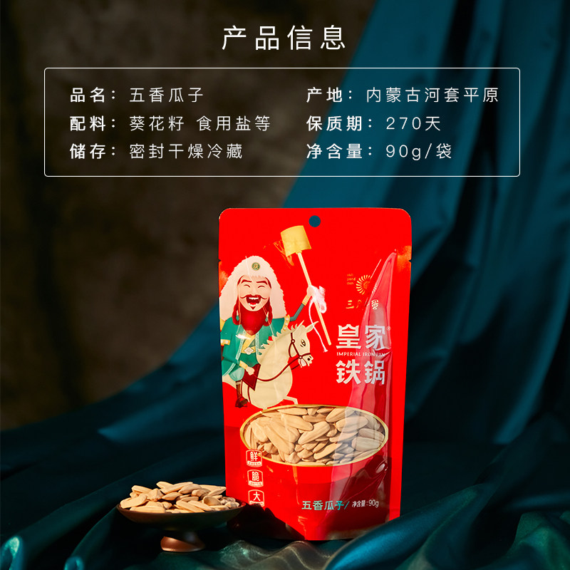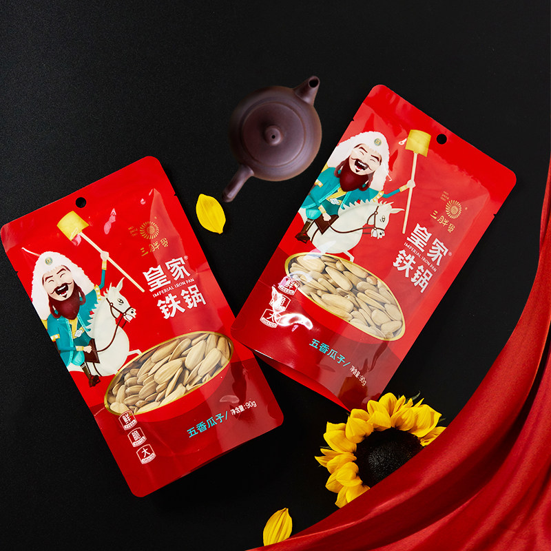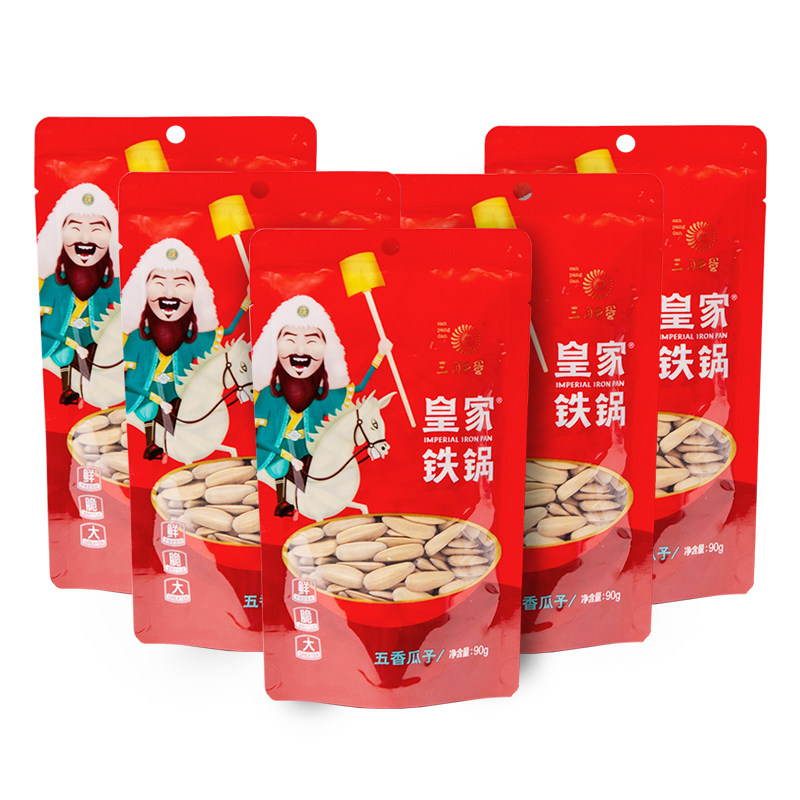 Three Fat Egg Royal Iron Pot 90g*5 Bags of Spiced Melon Seeds and Sunflower Seeds Large Sunflower Seed Nuts Roasted Snacks