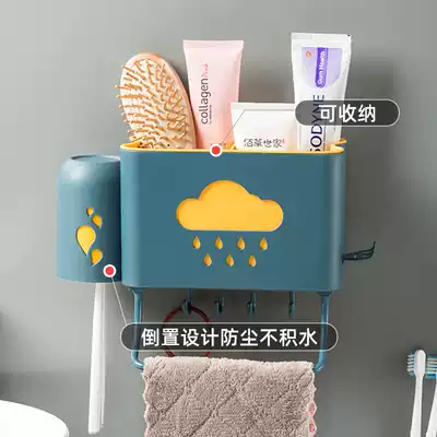 Toothbrush rack no punch wall hanging wall type mouthwash Cup Tooth Cup hanger dressing room storage wall mounted wash set