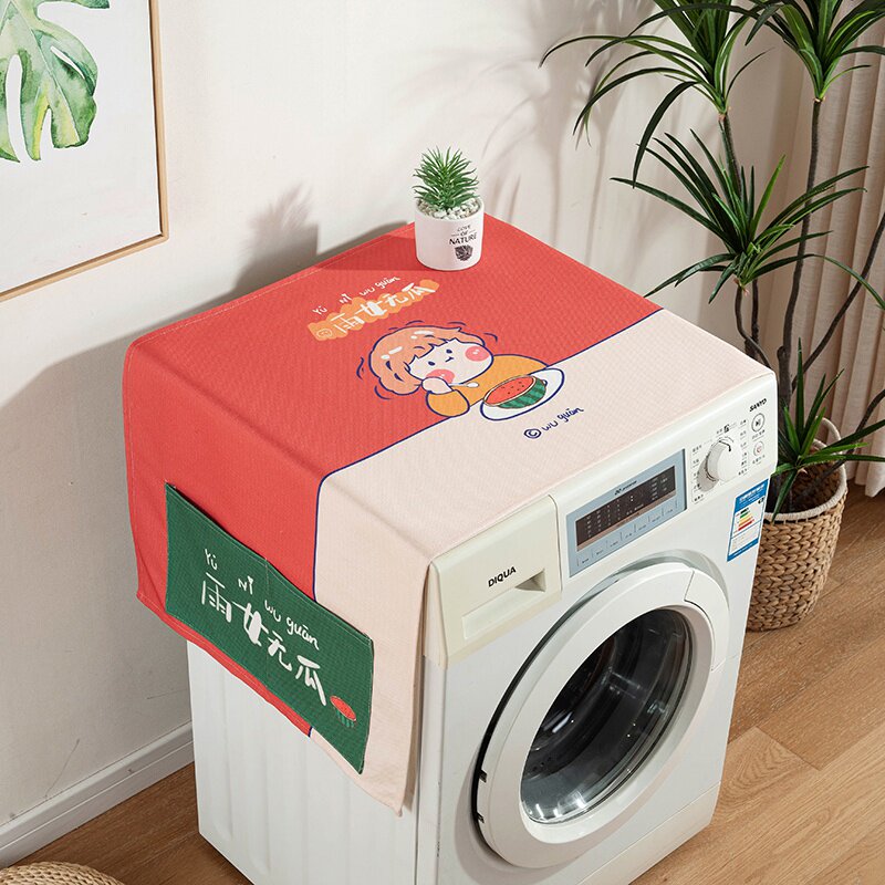 Waterproof Nordic cotton and linen fabric art cartoon decorative cover roller storage bag refrigerator washing machine cover towel