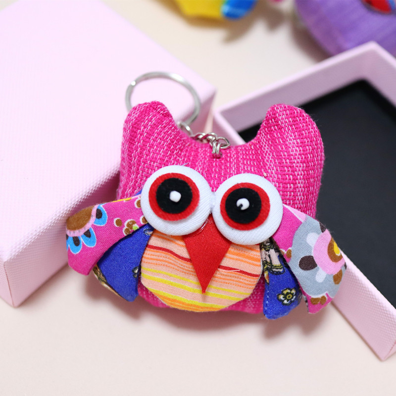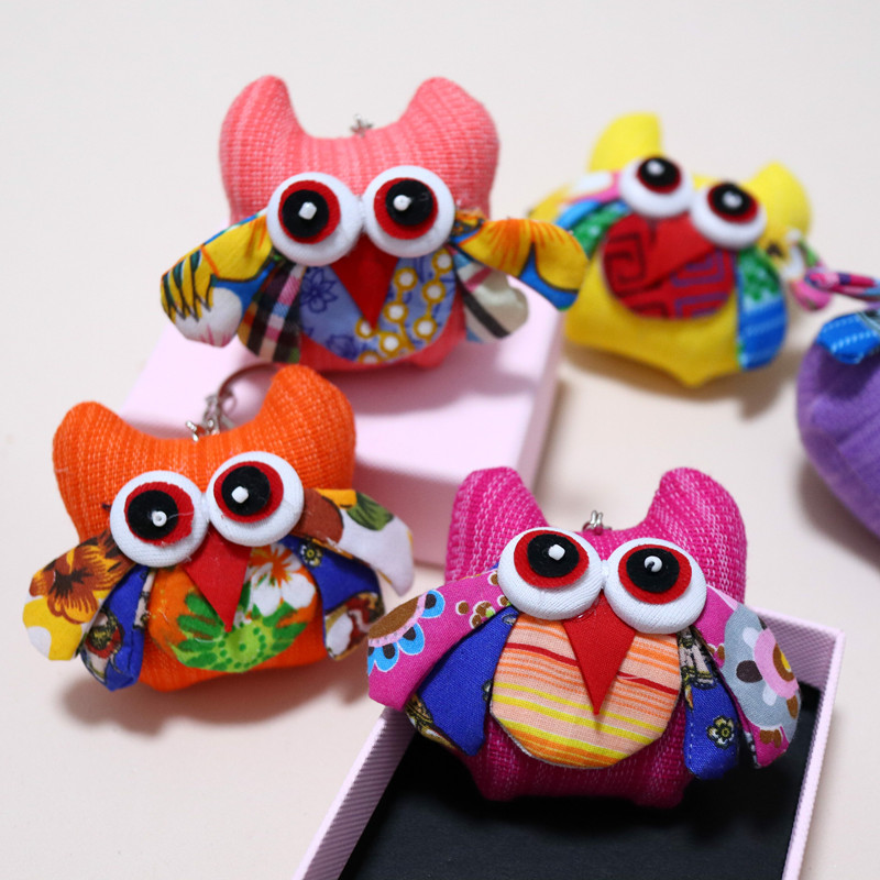 Thai cartoon owl keychain handmade cloth doll pendant trinket cute girl car key pendant