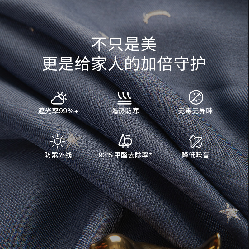 Xingyue curtain dark blue, double opening by default, please contact customer service if you need single opening, please contact customer service if you need formaldehyde removal function