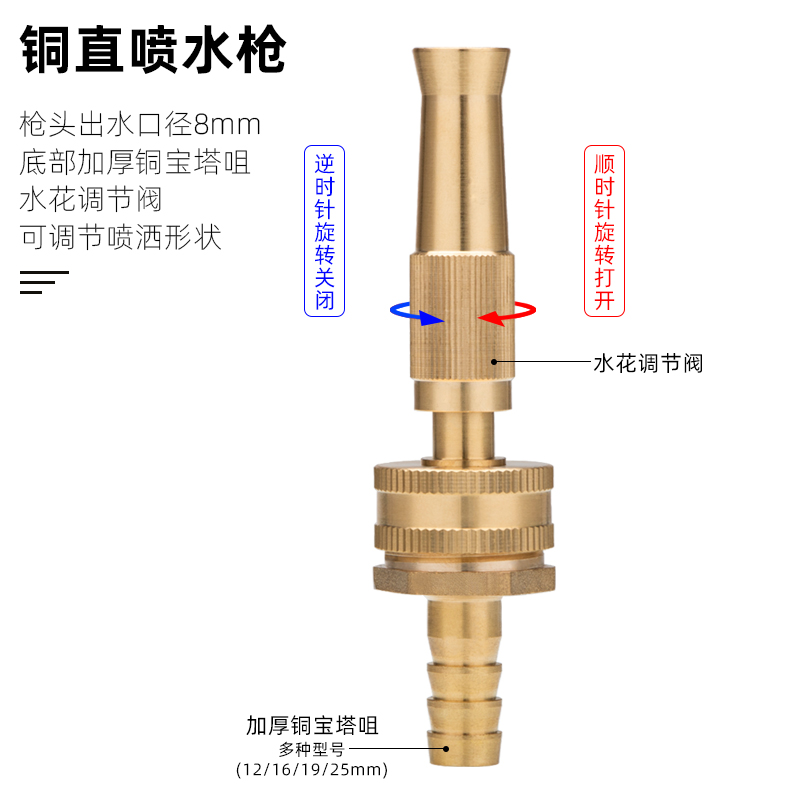 All copper net red portable flower nozzle household direct spray high pressure watering water gun adjustable water column