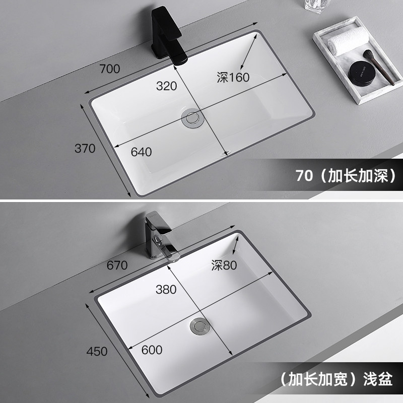Deepen 80cm in-stage basin Large size Embedded rectangular washbasin Makeup Room Face Basin Single Sink Super Large 70