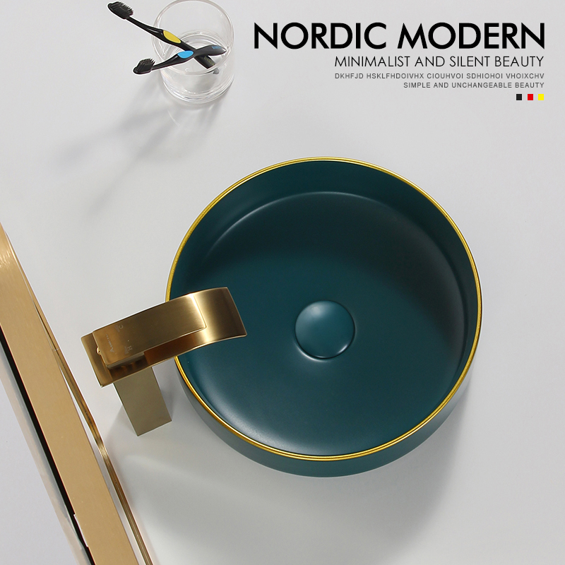 LJ840 single basin free green ceramic drain set LJ840 with black square faucet package LJ840 with golden waterfall faucet package LJ840 with black gold beauty faucet