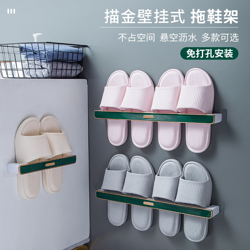 Bathroom shoe rack Hanging containing layer frame plastic free of punching slippers containing hanging frame Makeup Room Leash Wall Disposal Rod