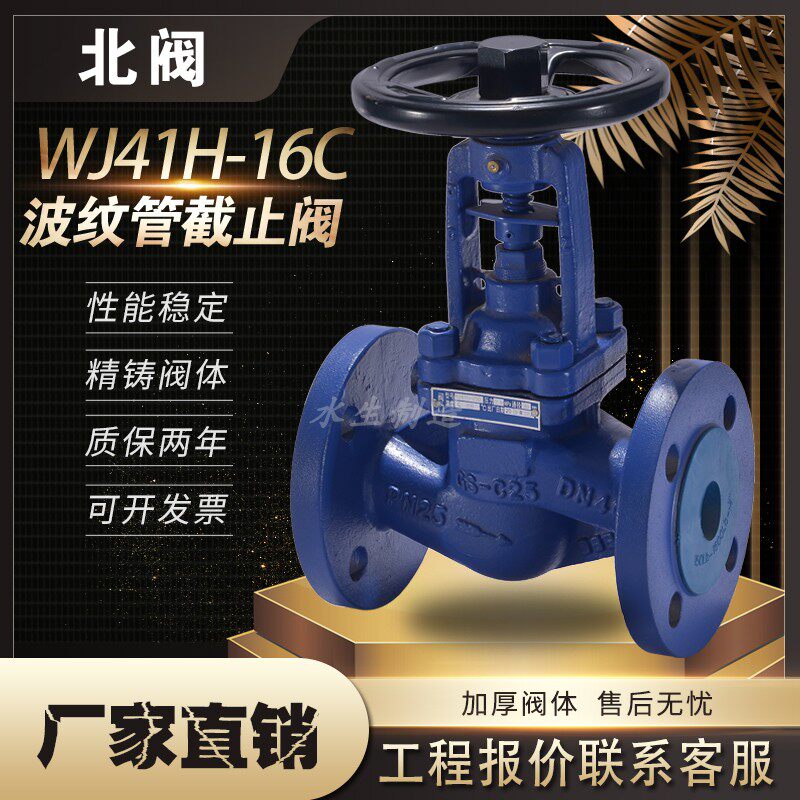 WJ41H-16C bellows flange stop valve German standard boiler high temperature steam thermal oil cast steel DN50 north valve