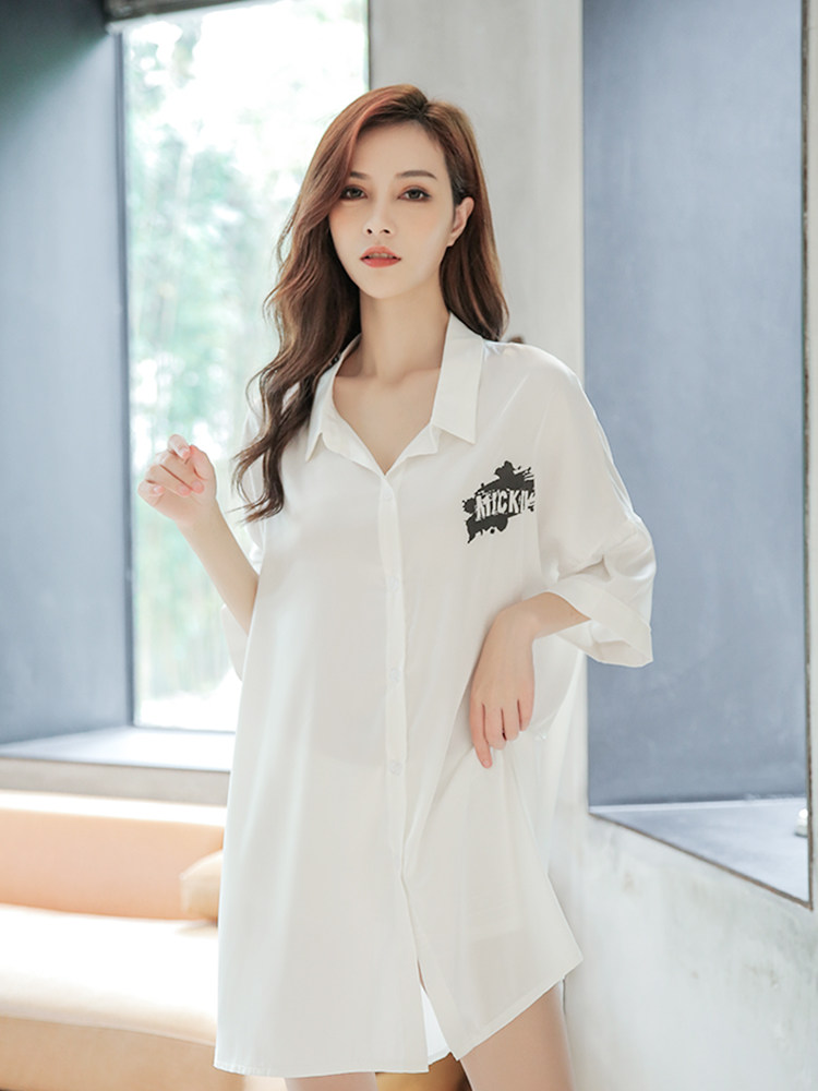 2021 New Sleeping Dress Women's Summer Sexy Ice Silk Thin White Shirt With Long Version Superior Real Silk Summer Pyjamas
