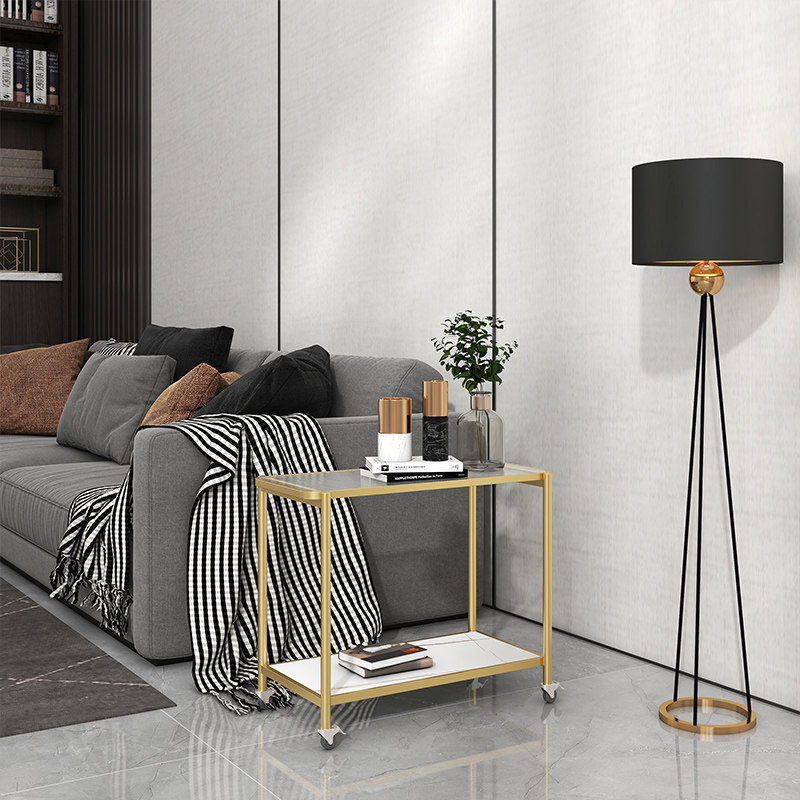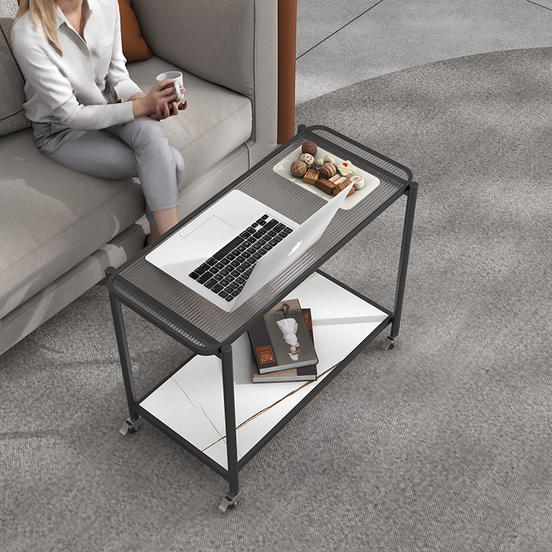 Light luxury sofa side table movable small coffee table with wheels living room trolley dining side several cabinets bed Changhong tempered glass
