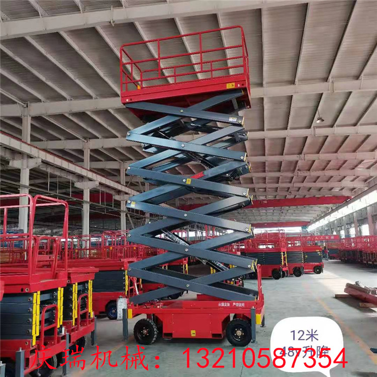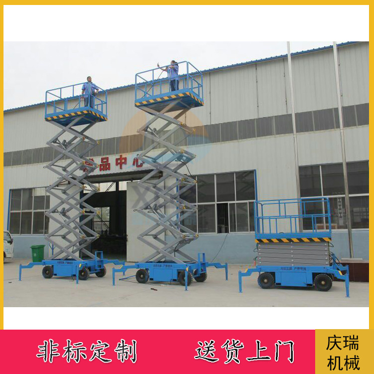 Construction site with four-wheeled mobile lift electric hydraulic lifting platform 6 8 10 12 m aerial vehicles
