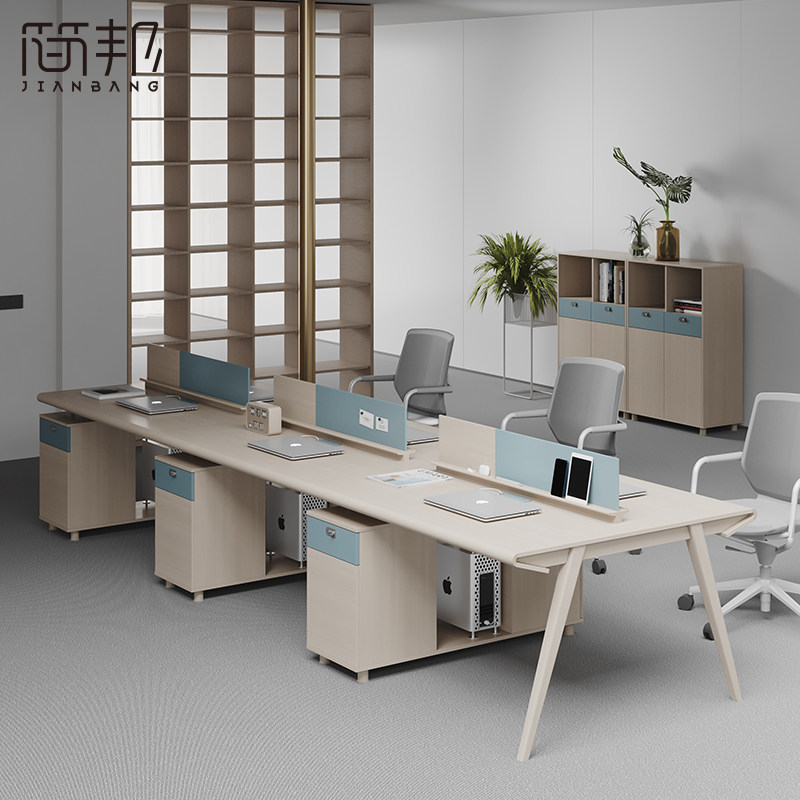Desk chair combination minimalist modern double office Employee Screen station 4 6 four-member staff table
