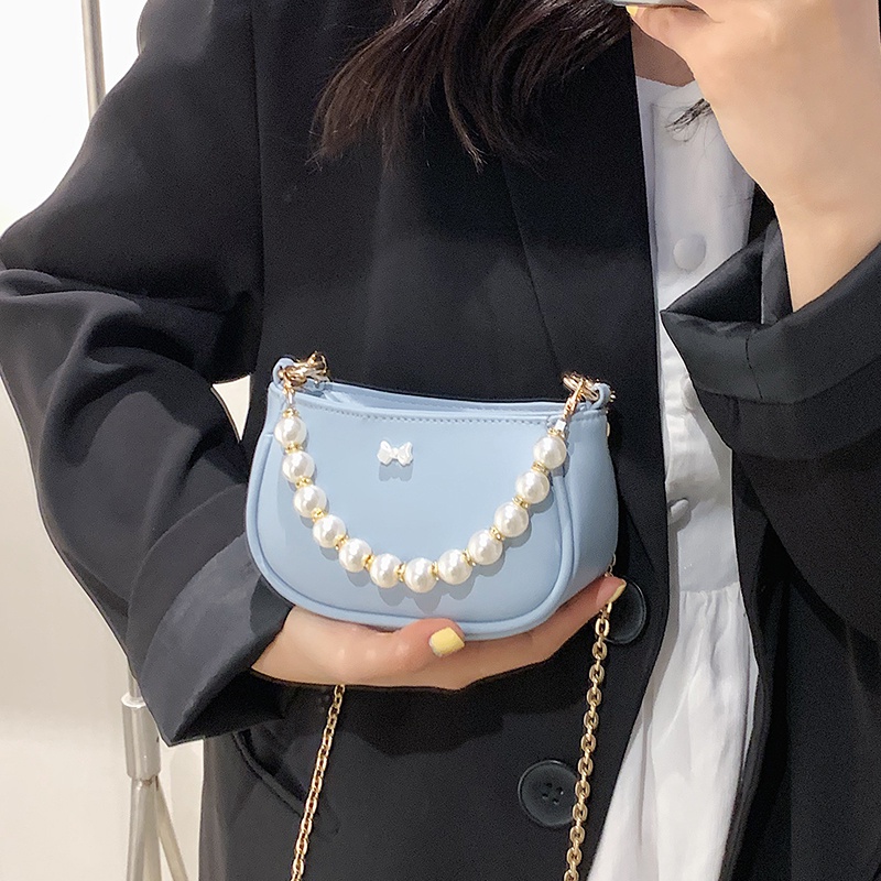 Net red explosions mini small bag female summer 2021 new fashion pearl chain bag portable slung small square bag