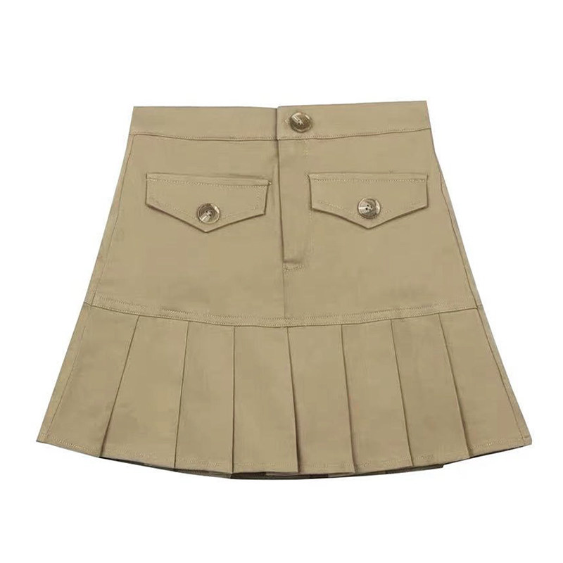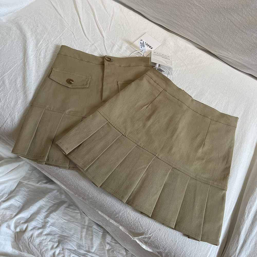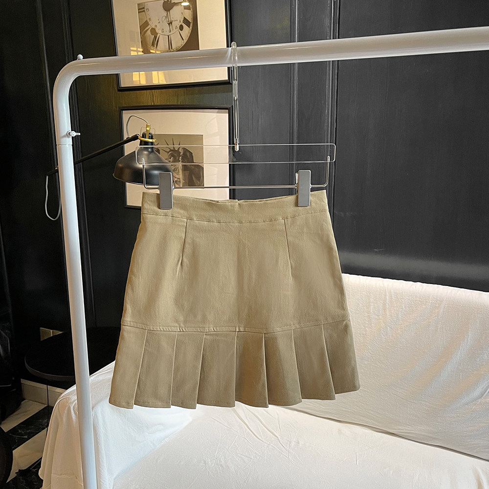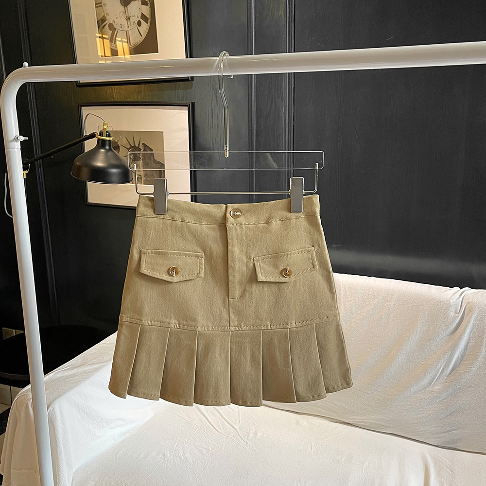 Autumn niche khaki pleated skirt female high waist slim hot girl tooling style short skirt casual pleated skirt