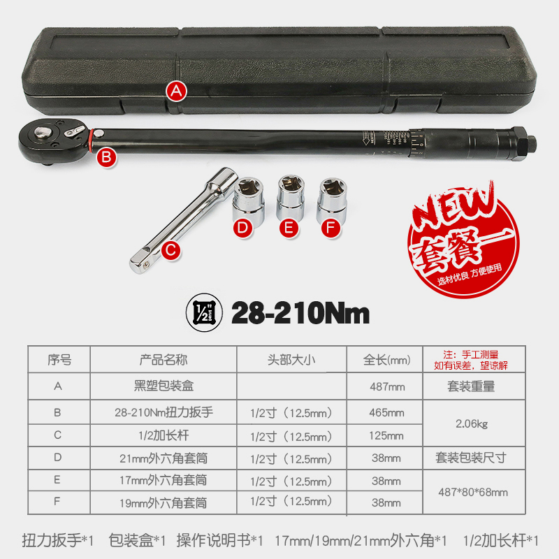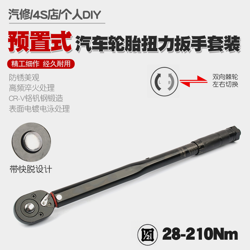 Car Tire Torque Wrench Kg Moment Wrench Torque Sleeve Ratchet Fast Wrench Tool 28-210N