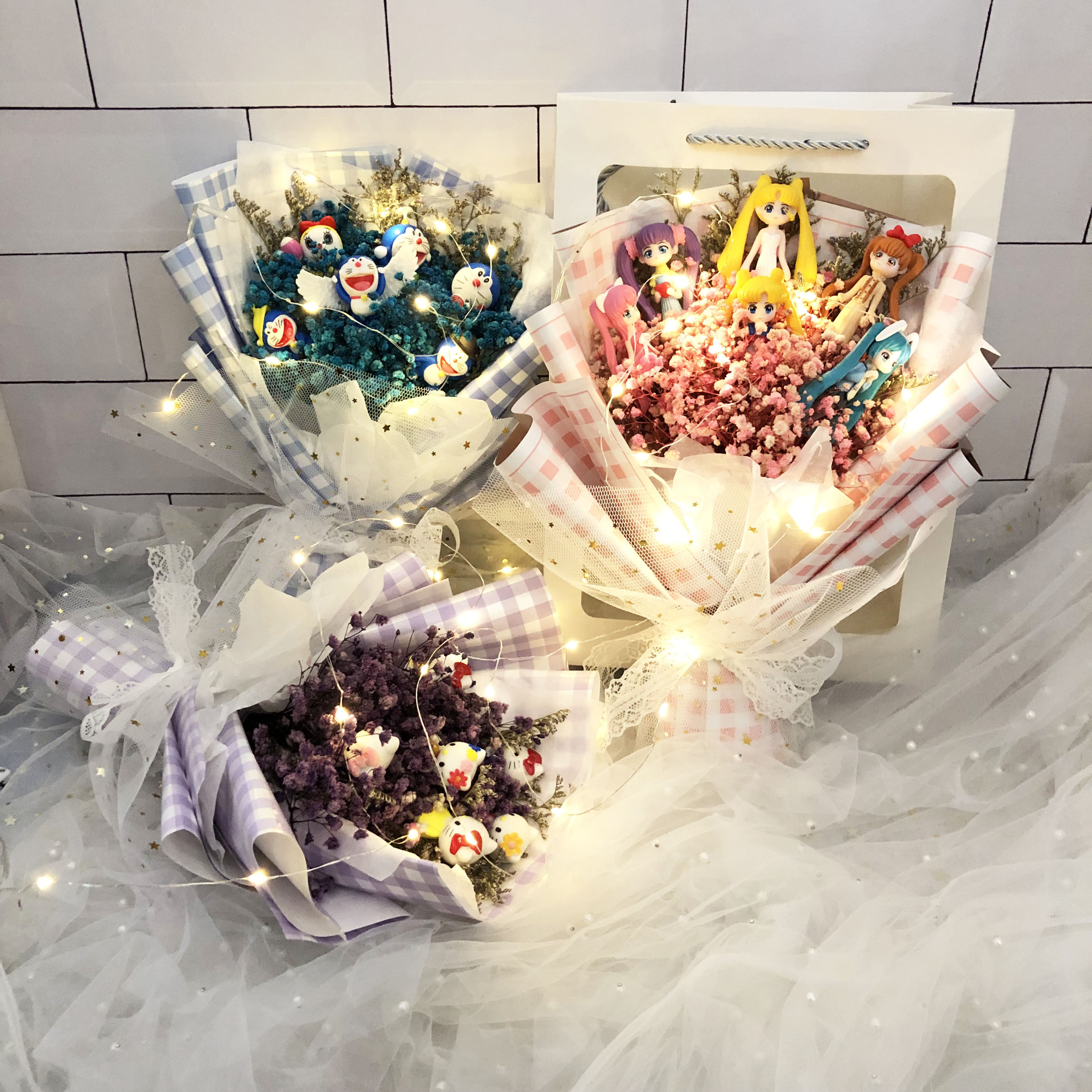Pink baby's breath kt gift bag light pink baby girl gift bag light pink starry doraemon gift bag light blue starry doraemon gift bag light purple sky full of beauty