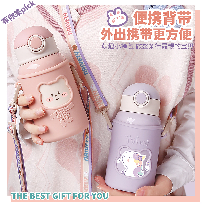 Children's thermos cup baby kindergarten 316 food-grade water cup female students portable cute baby bag straw kettle
