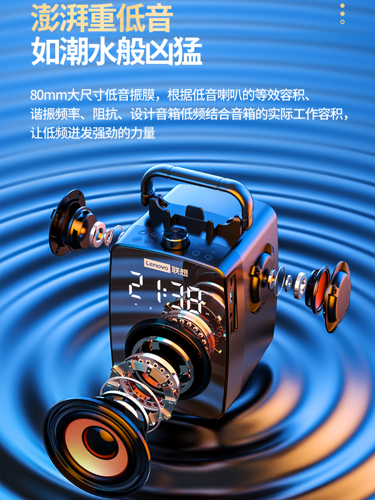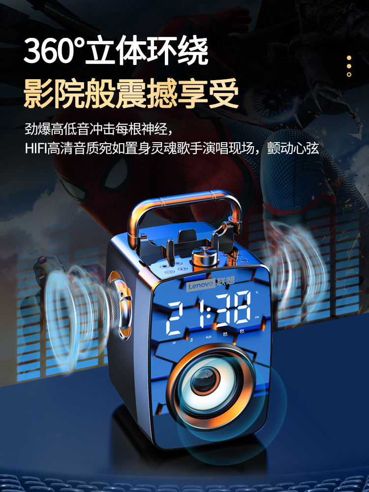 Lenovo multifunctional wireless bluetooth speaker mobile phone super heavy subwoofer high sound quality mini small audio outdoor high volume portable alarm clock Alipay money collection prompt home surround effect