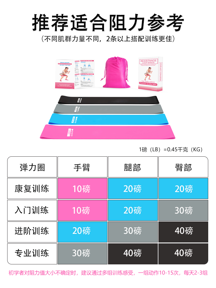 Latex · elastic ring (pink) 10 lb latex · elastic ring (blue) 20 lb latex · elastic ring (gray) 30 lb latex · elastic ring (black) 40 lb latex · 4 packs (anti