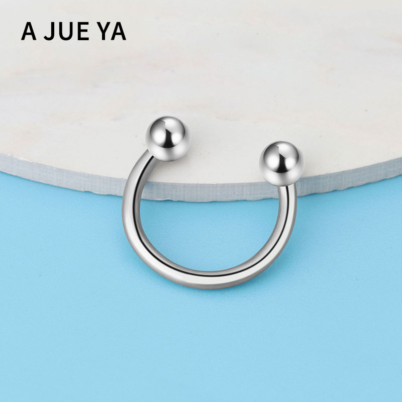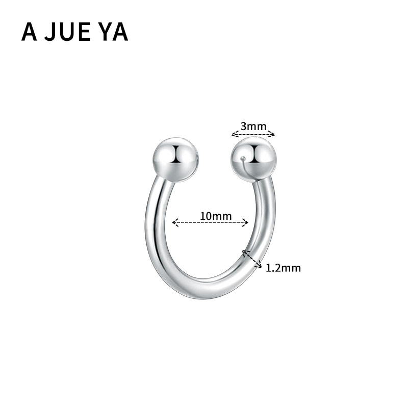 A Jue Ya s925 pure silver horseshoe ring anti-allergy lip ring lip ring breast ring earrings earrings silver nail ring