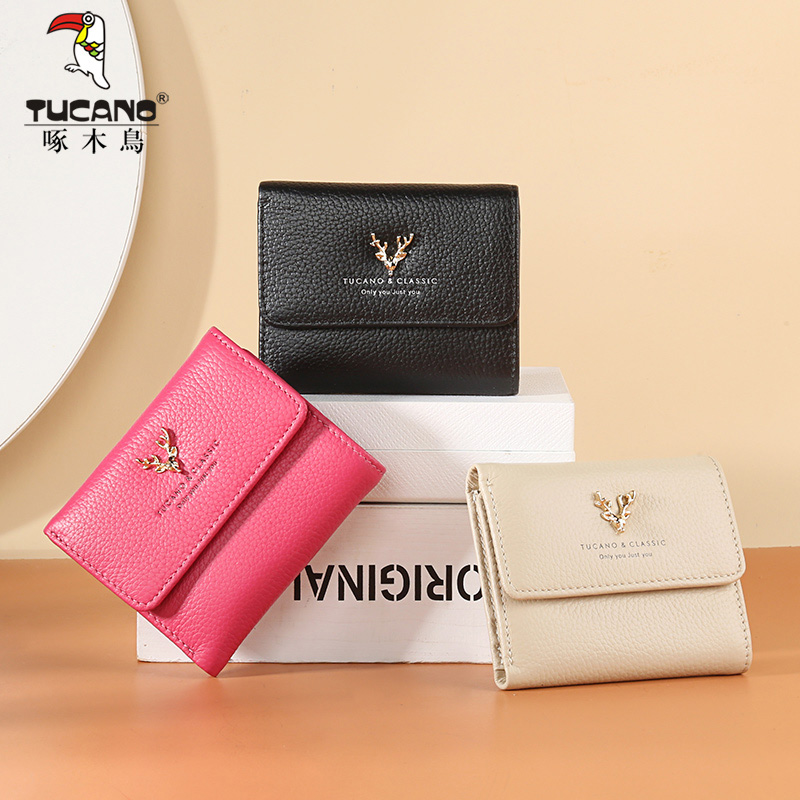 Woodpecker new three-fold wallet women's short small fresh student folding coin purse simple women's leather wallet