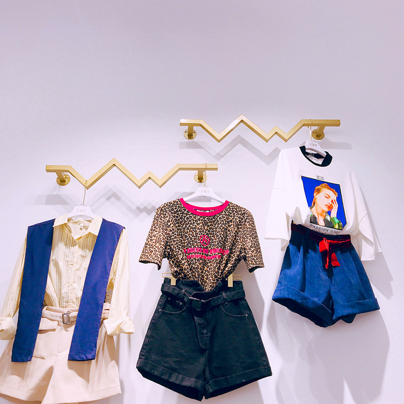 Clothing Store Upper Wall Show Shelves Golden Positive Hanging Women's Clothes Hangers Hanging Clothes Hangers Clothes Iron Art Wall-mounted Clothes Shelves