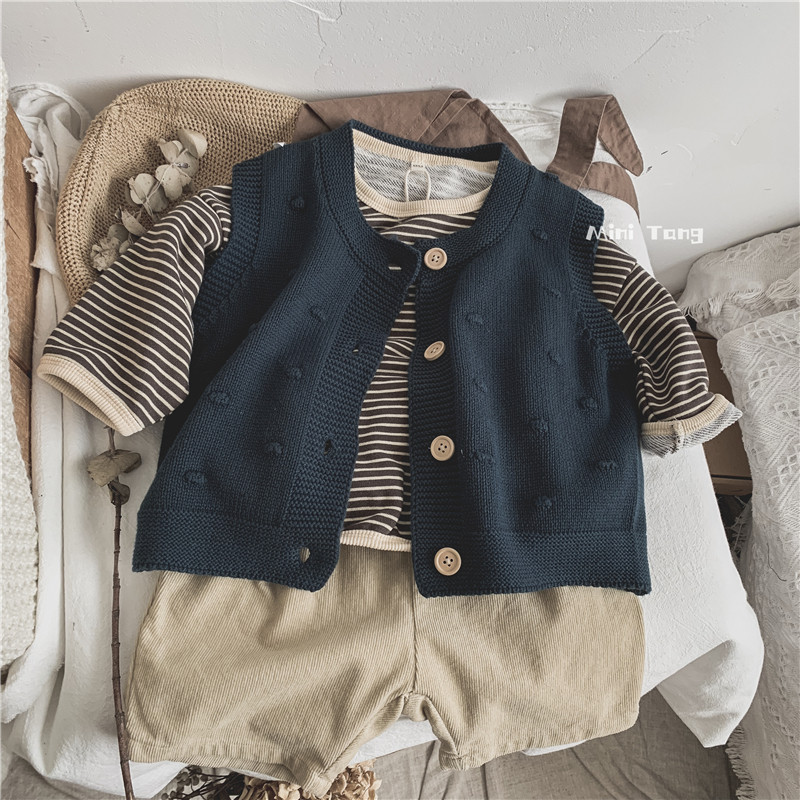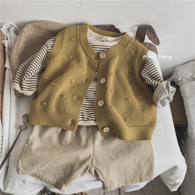Retro Elaborate ~ Temperament Trendy Crochet Children Knit Machia Men And Women Baby Single Row Buttonhole shoulder wool sweatshirt Autumn