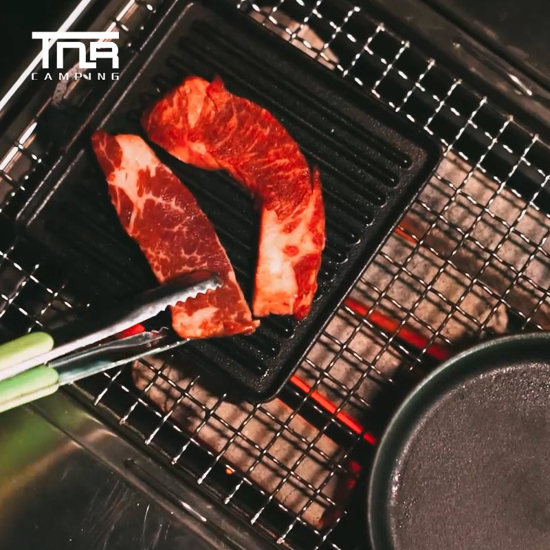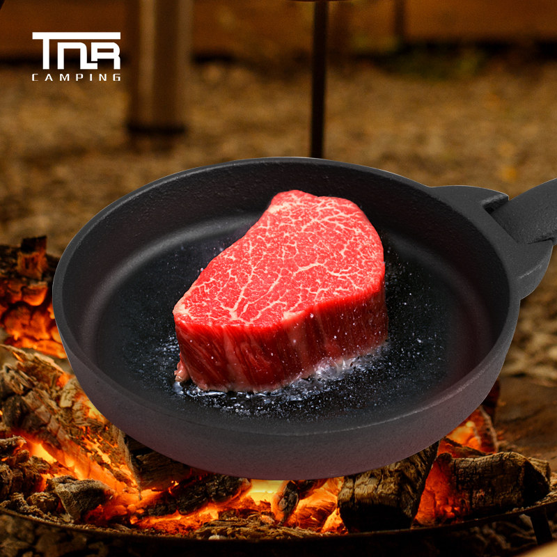 TNR outdoor camping picnic barbecue pot cast iron grill pan frying pan frying pan outdoor cooking utensils portable anti-scalding