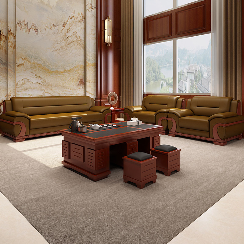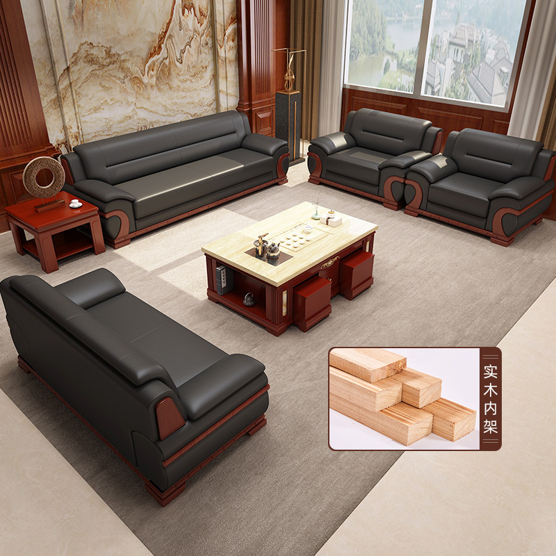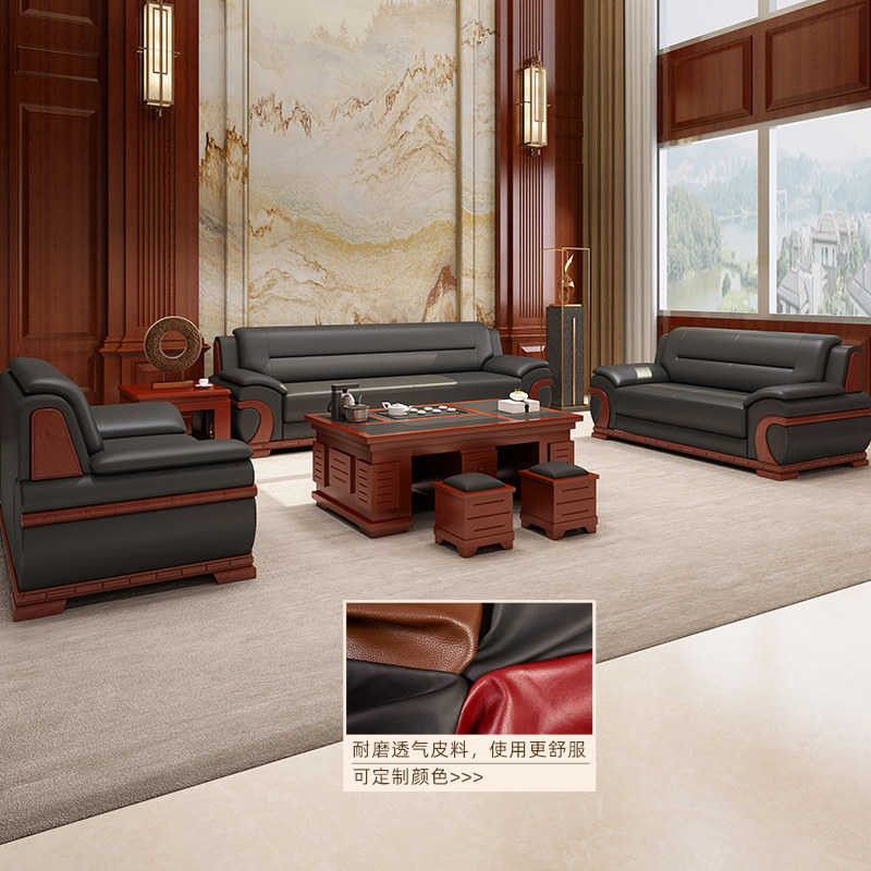 Office sofa office reception Chinese modern villa hotel lobby reception area leather sofa coffee table combination