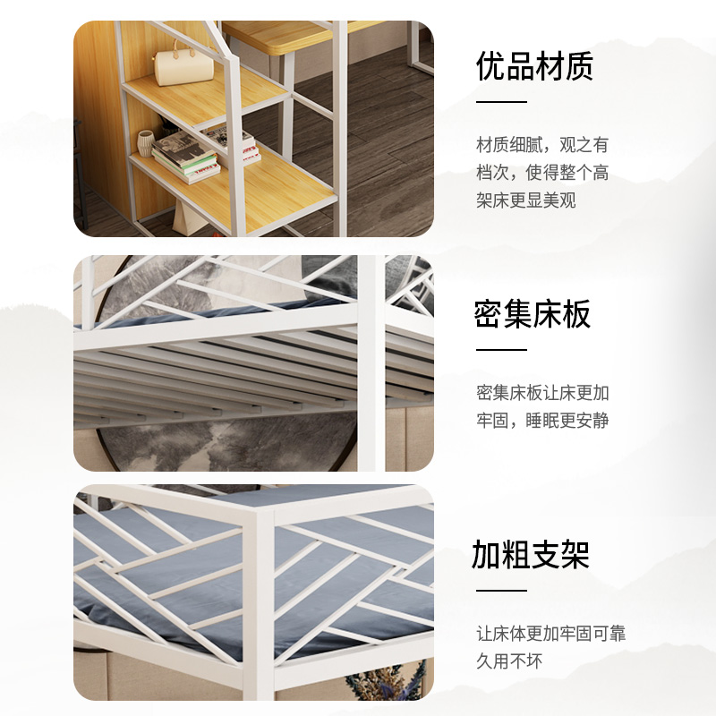 Space-saving elevated bed bed under the table single double loft bed modern minimalist bedroom apartment single upper wrought iron bed