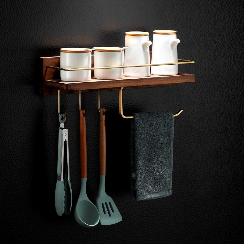 Black Walnuts Solid Wood Free Punch Bathroom Shelve Makeup Room Toilet Wall Hanger Washstand Wash Terrace Cosmetic Containing shelf