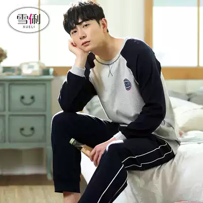 Xueli pajamas spring and autumn cotton men's long sleeve cotton casual home wear suit can be worn outside 2021 New