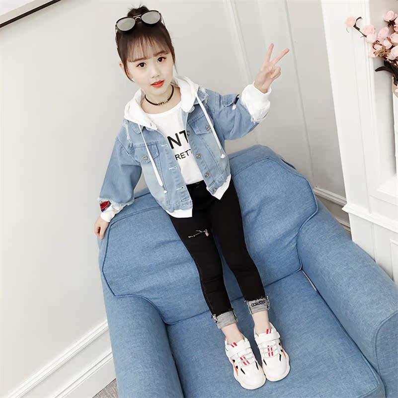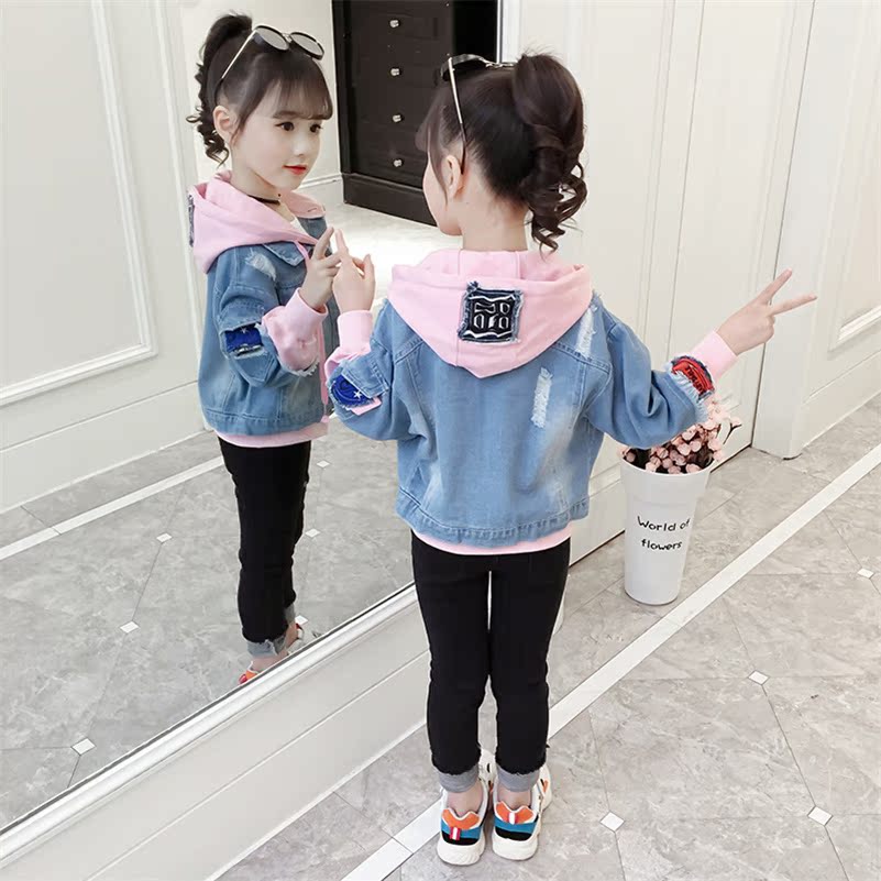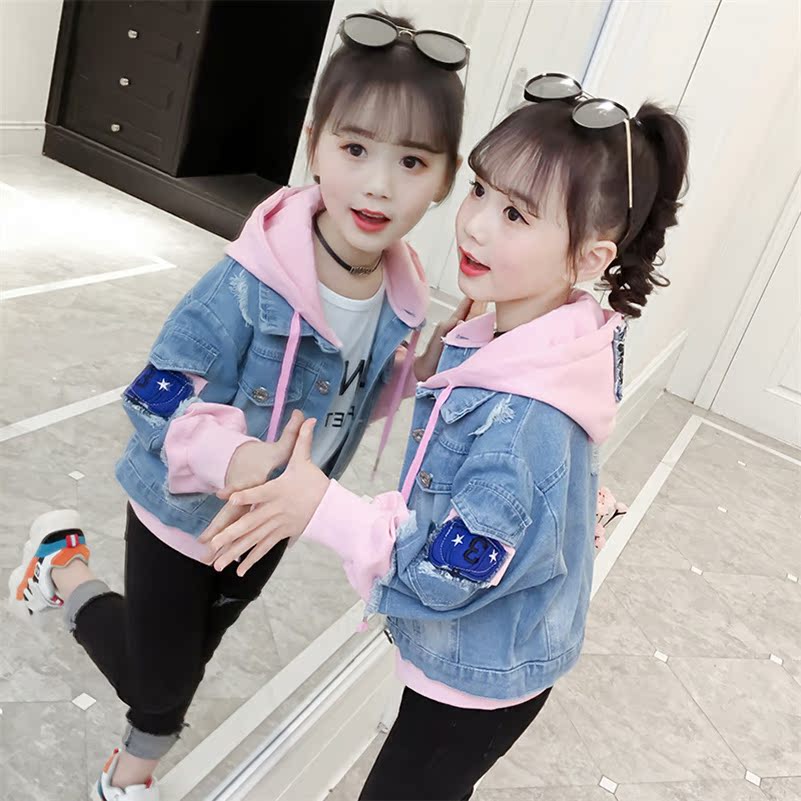 Girls' autumn clothes 2021 new tops foreign style children's spring and autumn Korean fashion denim jacket middle and big children thin section