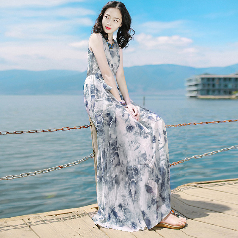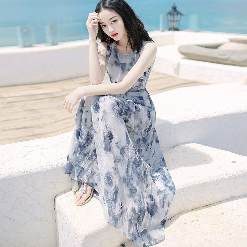 Women's clothing 2022 summer new temperament beach skirt high-end ink painting vest long skirt fashion dress women's tide