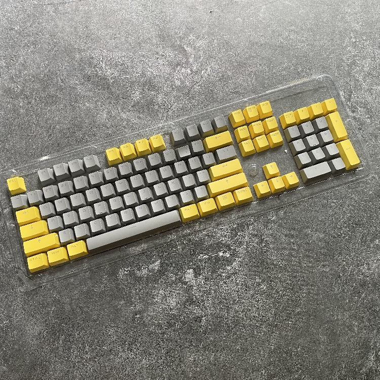 Inner black outer red pbt light transmission key cap inside ultraviolet white pbt light transmission key cap Neblack out yellow pbt light transmission key cap Neblack outer grey pbt light transmission key cap inner grey outer yellow pbt light transmission keycap Inner black outer white p