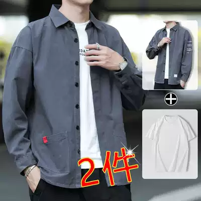 Long-sleeved shirt Men's cotton shirt spring and autumn Korean version of the trend tooling jacket men's loose casual summer trend