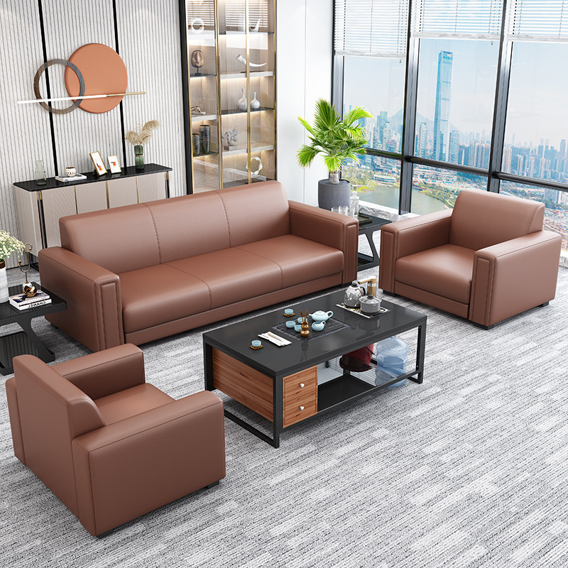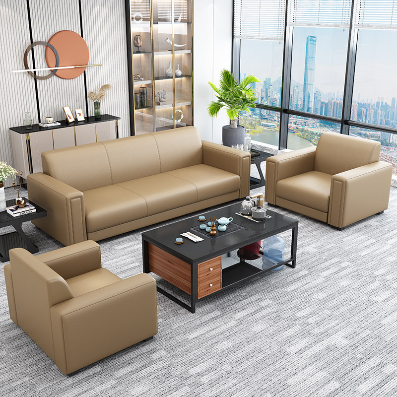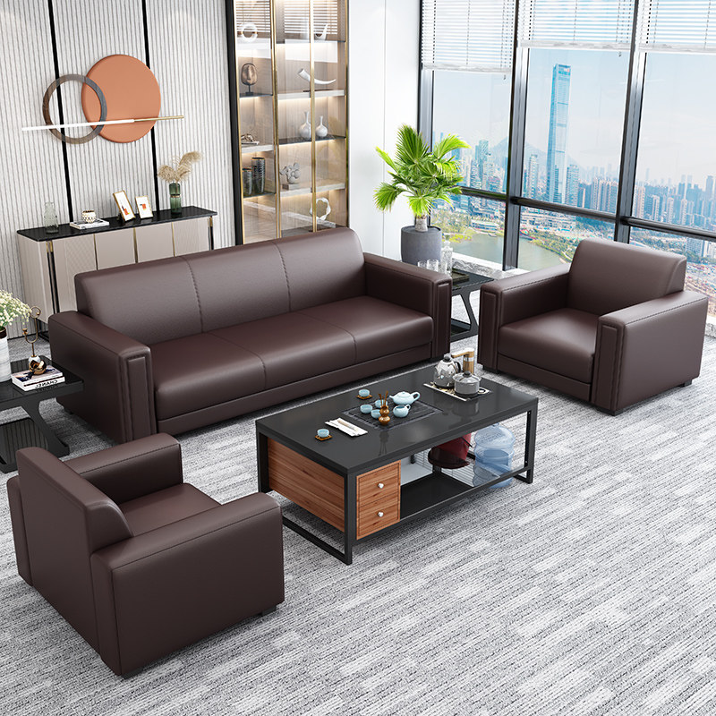 Office sofa modern business reception small apartment simple leather sofa reception three-person office coffee table combination