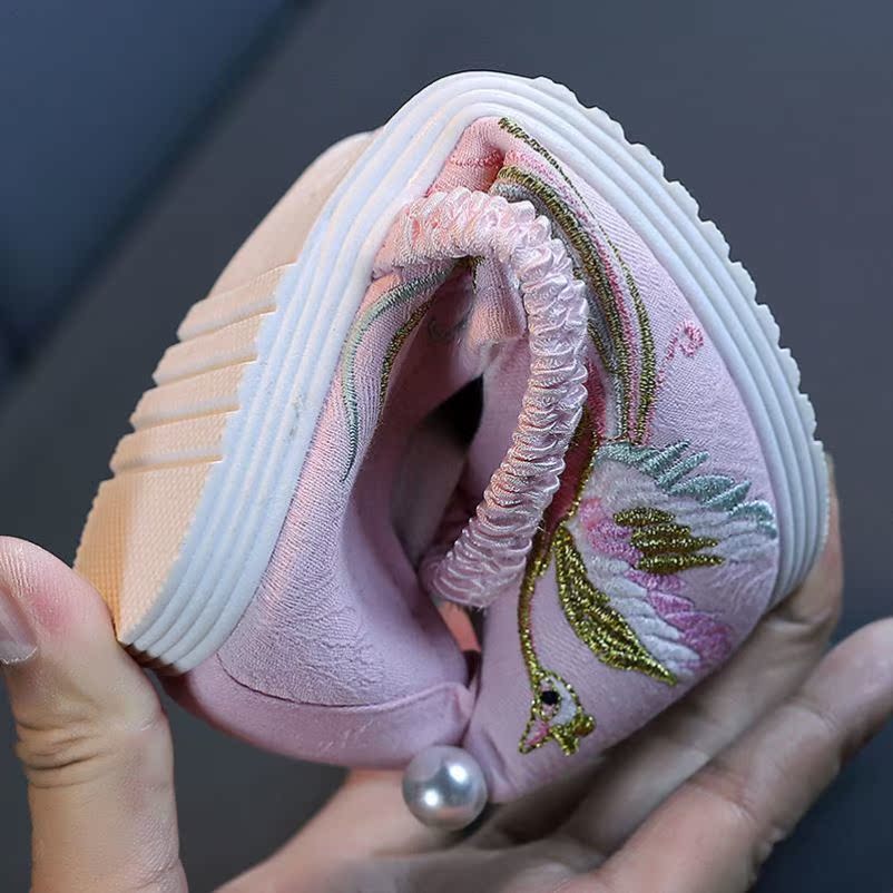 Hanfu shoes girls summer soft bottom ancient style super fairy beef tendon non-slip handmade embroidery spring warped head original pearl dance