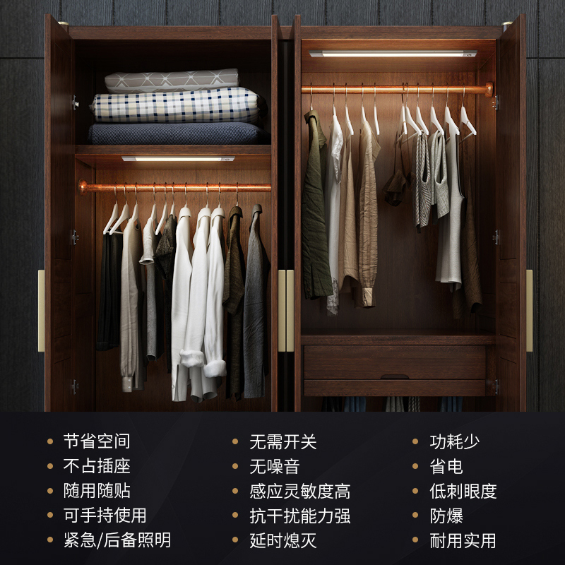 led rechargeable human body induction light with wireless home wardrobe overall cabinet light wiring-free wine cabinet shoe cabinet bottom light bar