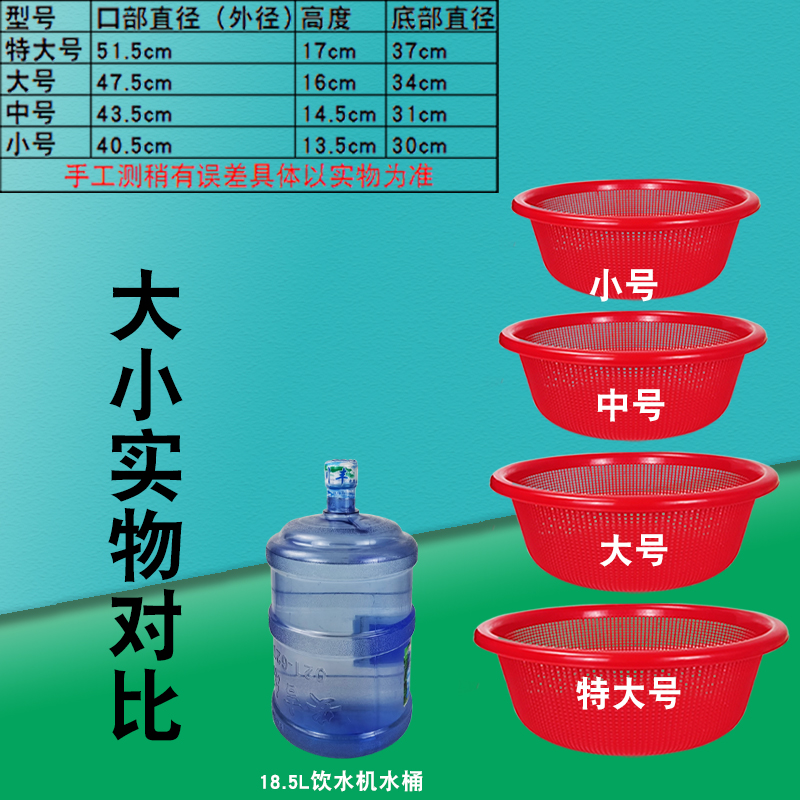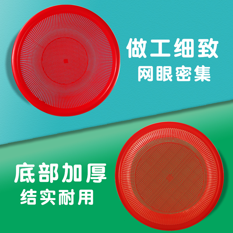 Red Amoy rice basin Rice drain basin drain basket thickened round household plastic dense eye filter Medium large Miro