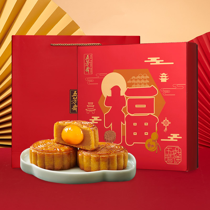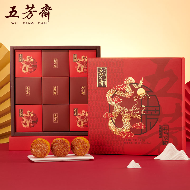 Wufangzhai Cantonese-style mooncake gift box bamboo basket gift box egg yolk lotus paste Wuren bean paste multi-flavor Mid-Autumn Festival group purchase