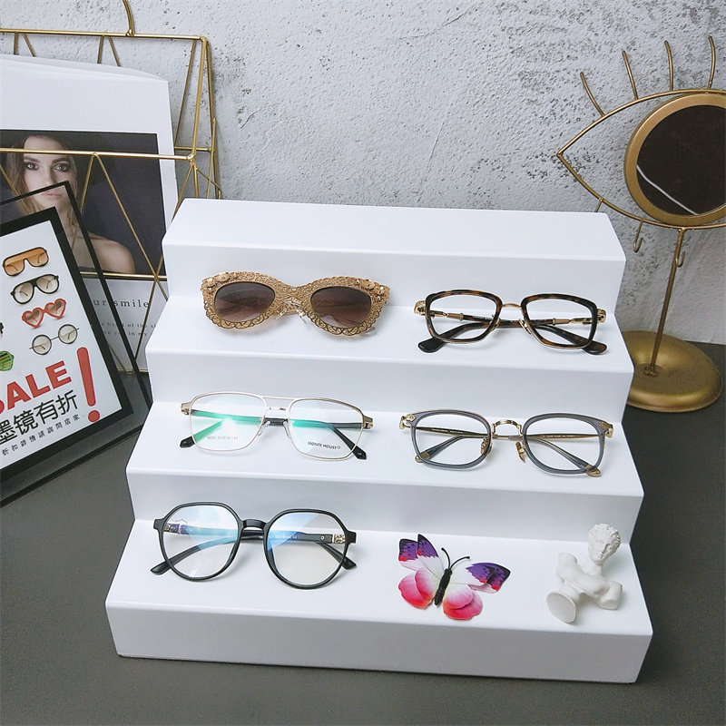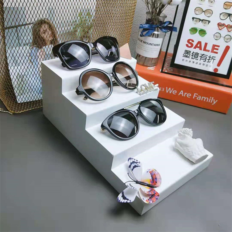 Glasses Shop Hot Sell Solid Wood Baking Lacquered Block Display Ladder Sunglasses Sunglasses Sunglasses High Cabinet Display Show Shelf