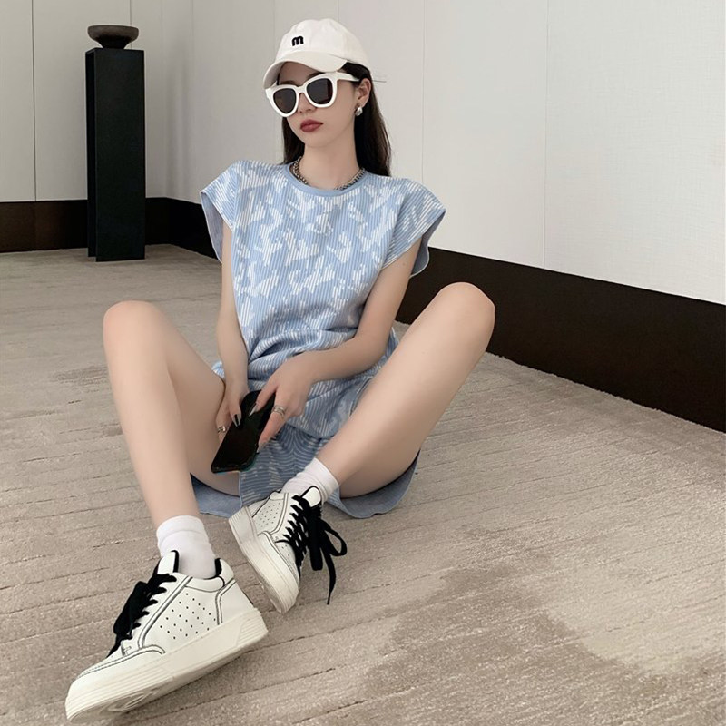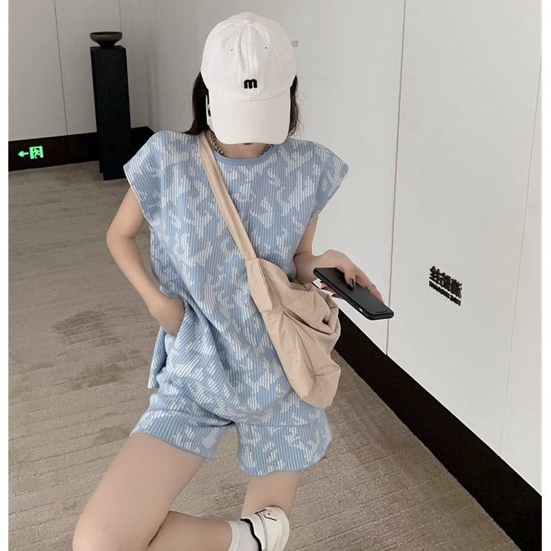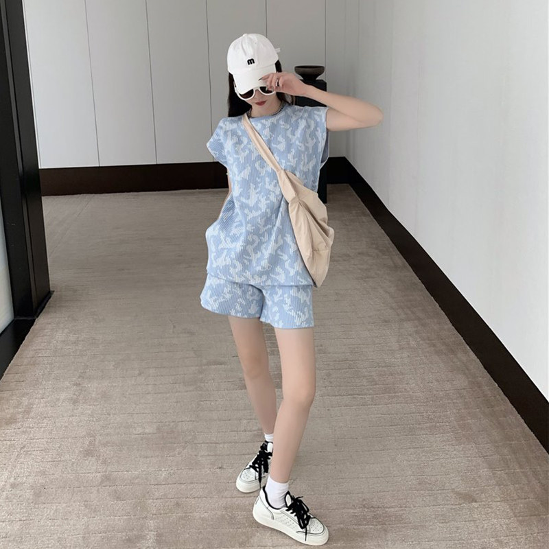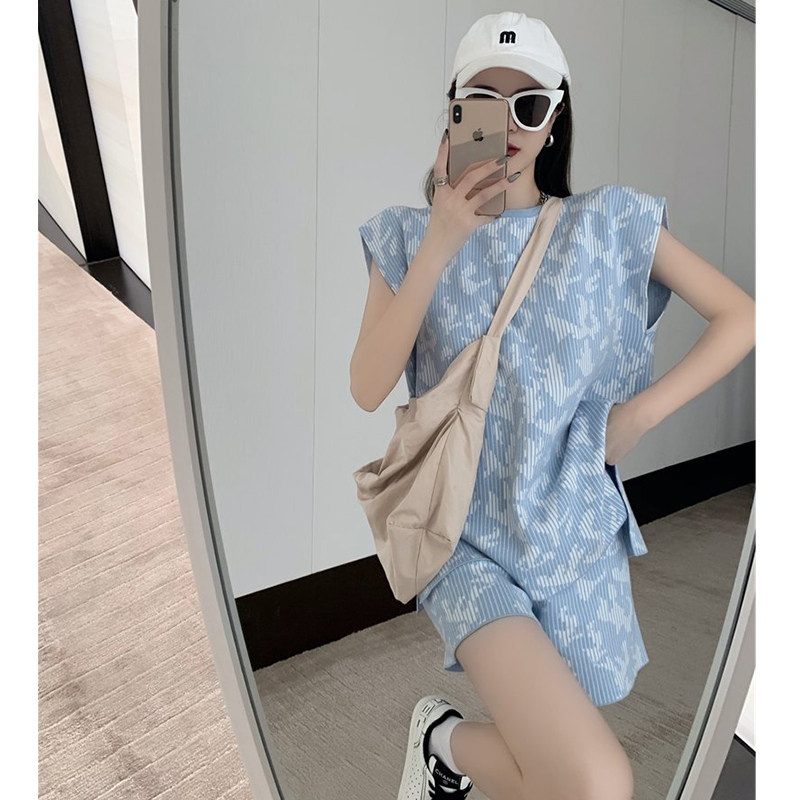 Sports and leisure suit female summer 2021 new small temperament fried street age reduction net red fashion shorts two-piece set