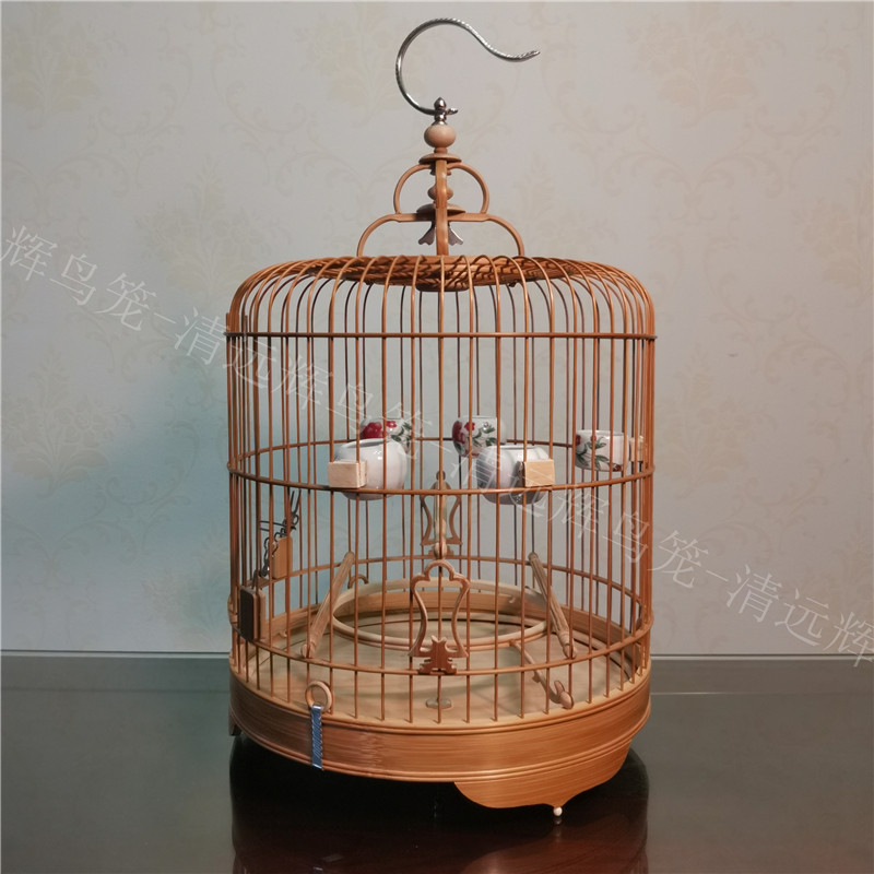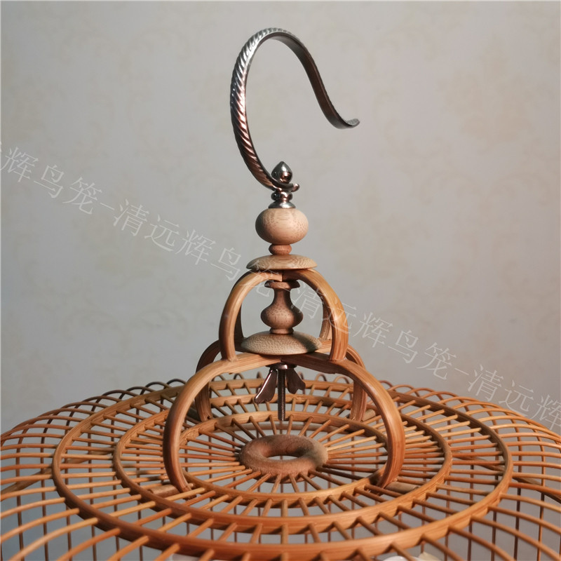Qingyuan Hui embroidered eye golden blue small black and white bird cage Cantonese wave cage 48-52 branches Hook with green bamboo