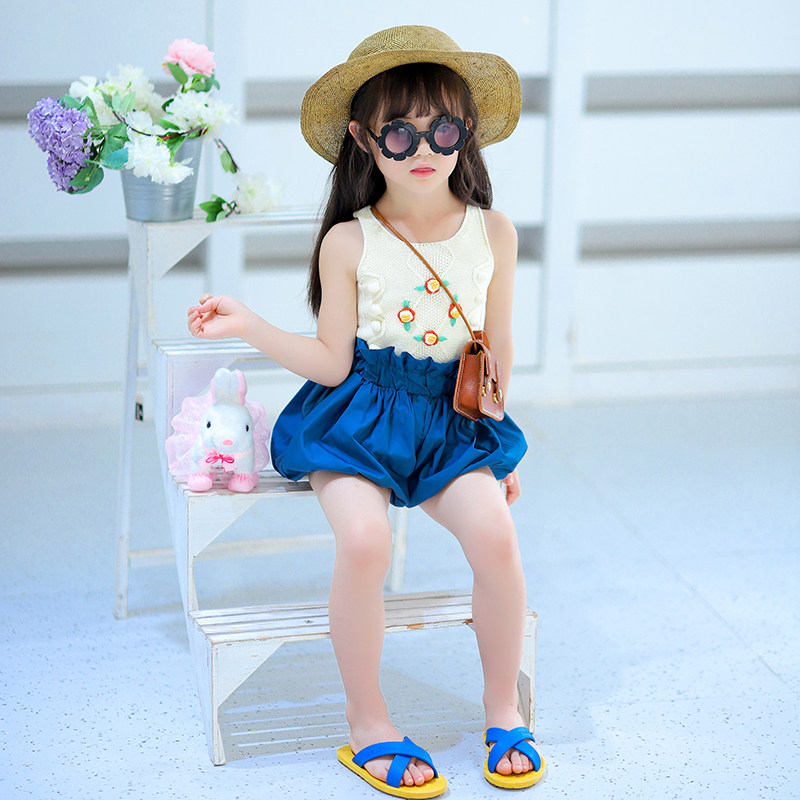 Small Honey Candy Child Clothing Girl Flowers Bratpants Summer Dress New Women's Baby Foreign Pie Big PP Pants Children Blue Shorts Pants