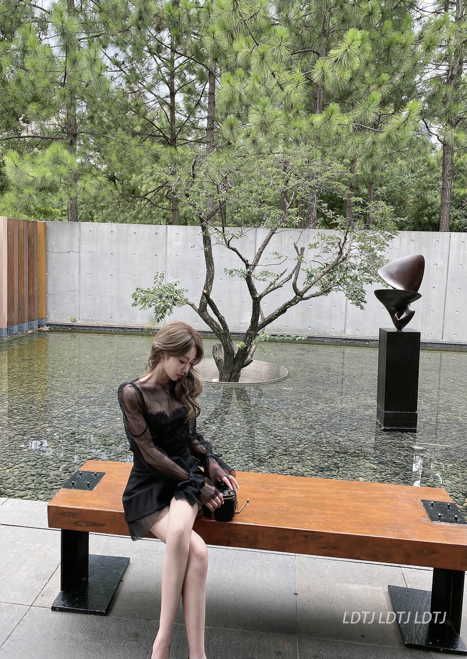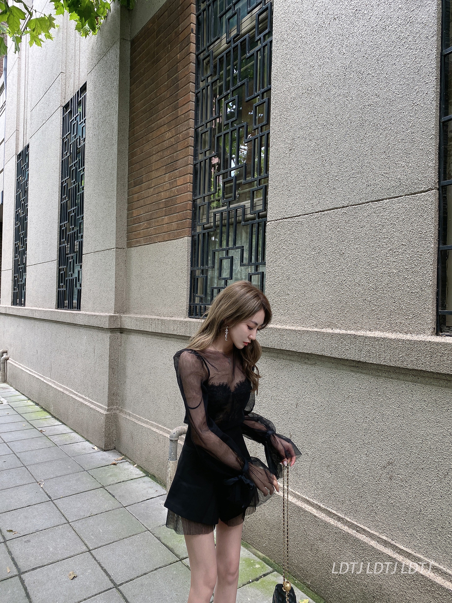 LDTJ Gaoding Set Set Women 2021 Summer French Retro Top Lace Black Shorts Temperament Two-piece Set